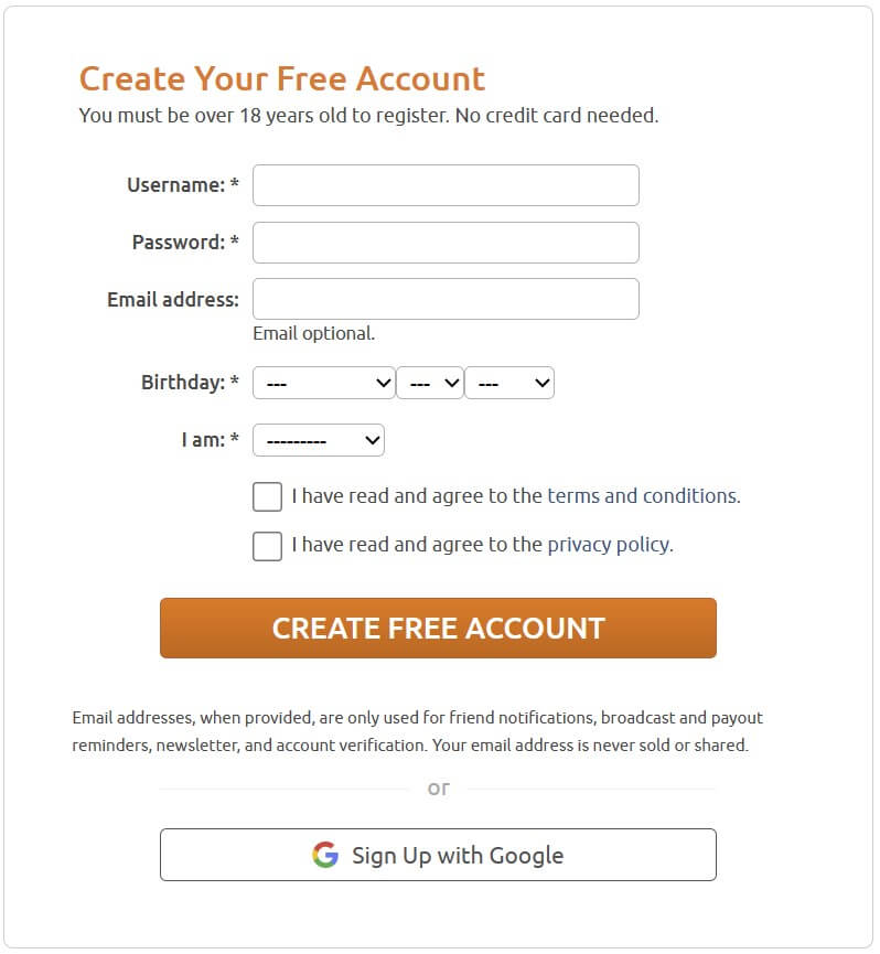 If you enjoy the site, the next step we will go through is how to start a Chaturbate account. Creating an account and joining the site is free of charge. All you need is an email address and to create a username.