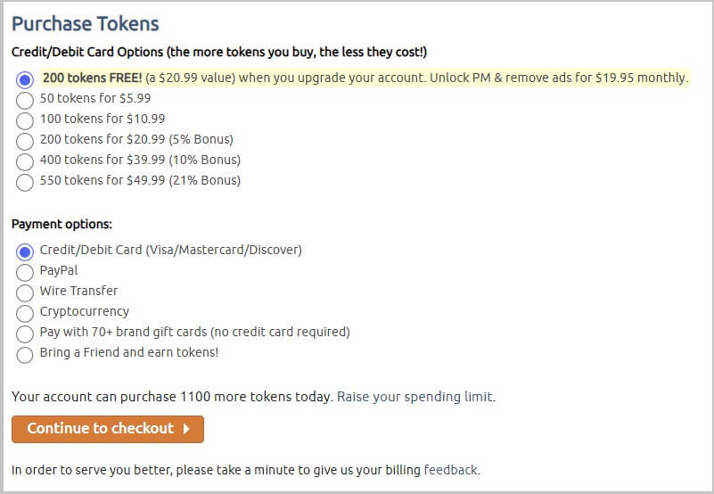 The premium supporter account costs $19.95 monthly (get 200 free Tokens in the first month).