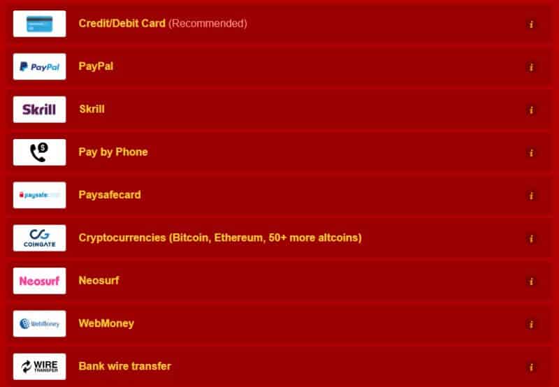 Live Jasmin offers various payment options, from traditional credit cards to Bitcoin. Below you see the full list of payment options: